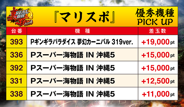 「Pスーパー海物語 IN 沖縄5」からは、+15,000ptを含めた4台をピックアップした。