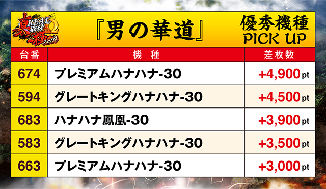 「グレートキングハナハナ-30」と「ハナハナ鳳凰-30」にも、+3,000pt以上の台が2台あった。