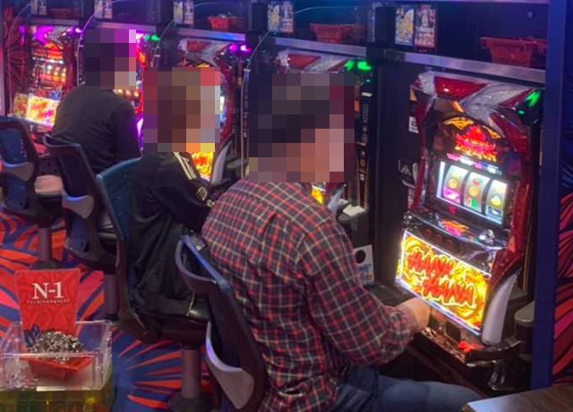 7台中4台が埋まっていた「プレミアムハナハナ-30」でも、遊技をおこなうプレイヤーの表情は明るく、ハナハナシリーズ全体が華やかな雰囲気に包まれていた。