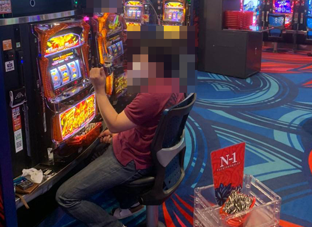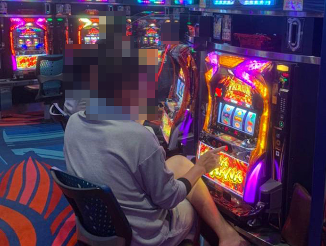 14時過ぎの「ツインドラゴンハナハナ-30」は10台のうち5台が埋まっており、どの台にも楽しげな姿があった。