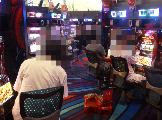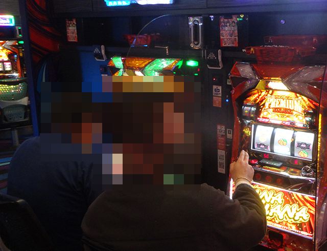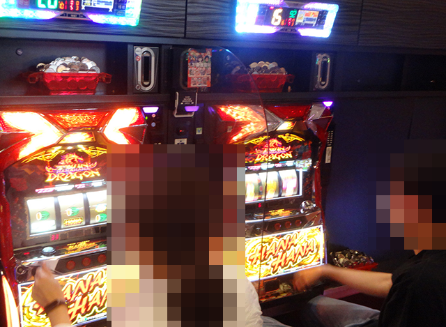 20台のうちの半分ほどが埋まっていた「ツインドラゴンハナハナ-30」でも、満面の笑みを浮かべて遊技をおこなっている姿を確認。