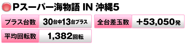 『牙狼月虹』と同じく30台設置の『Pスーパー海物語 IN 沖縄5』も高い差玉数を残した。