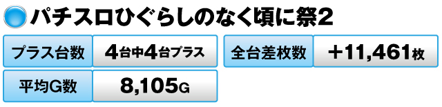 差枚数プラス1万枚突破3機種の最後となるのが『パチスロひぐらしのなく頃に祭2』。
