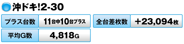 まずトップ差枚数となった『沖ドキ!2-30』のデータをチェック!
