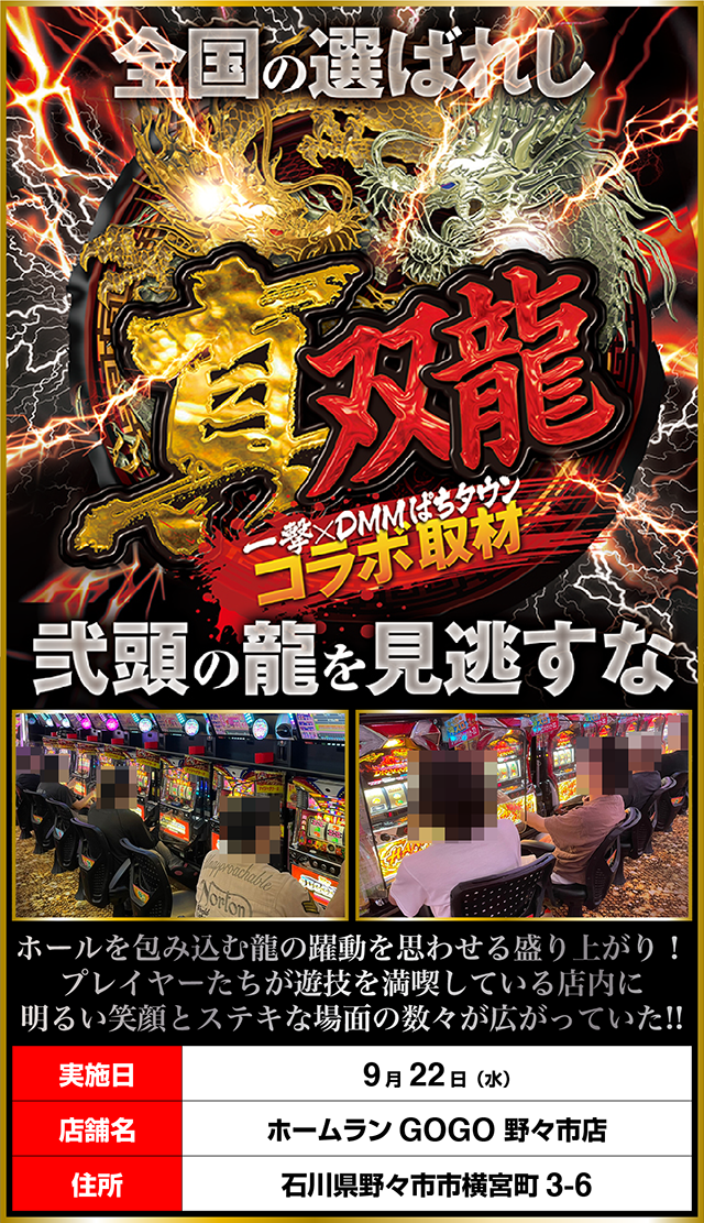「ホームランGOGO 野々市店」にて「真双龍」を実施した。