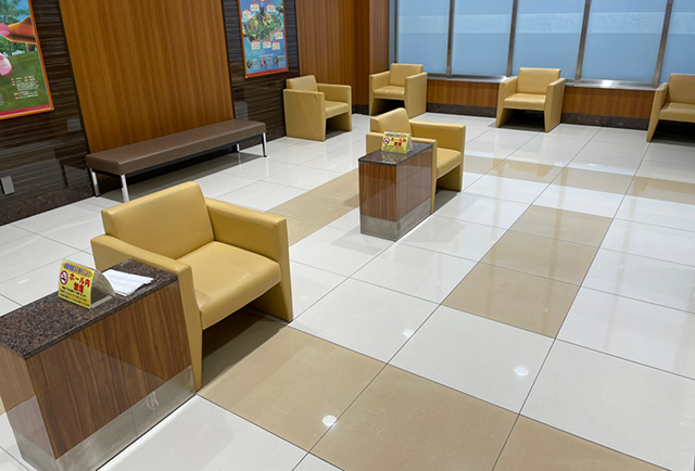 外は雨が降っていたが、店内の床面に水の汚れなどはナシ。ホール全体が清潔に維持されており、スタッフがこまめに清掃をおこなっていることがうかがえた。