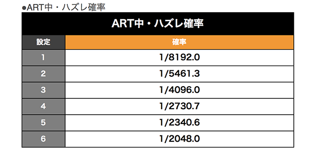 ART中のハズレ確率に設定差があり、出現するほど高設定に期待が持てる。