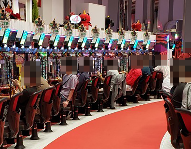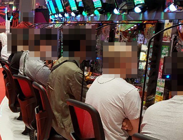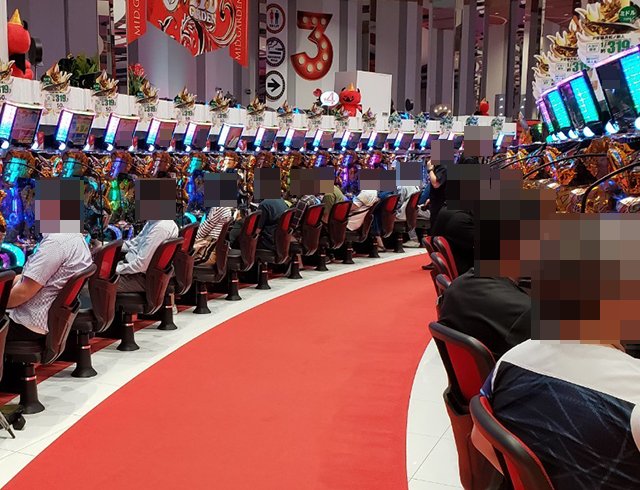 ホール全体が活気づいていた「ミッド・ガーデン堀之内店」。パチンコとパチスロのどちらにも楽しそうに過ごすプレイヤーの姿がみられた。