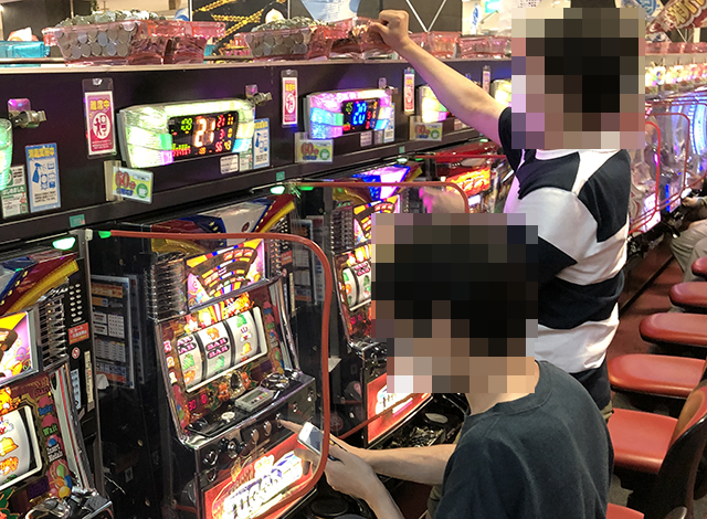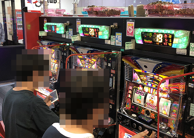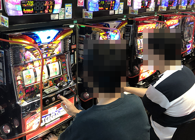 『マイジャグラーⅢ』は3台中2台が稼働しており、どちらのプレイヤーもパフォーマンスを披露していた。