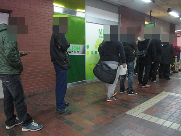 REAL取材Ωの2日目となる2月13日も9時50分から入場抽選が開始。前日を超える多数のプレイヤーが集まっており、にぎわいの大きさを感じられた。