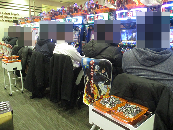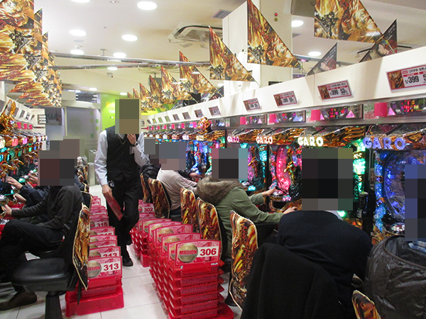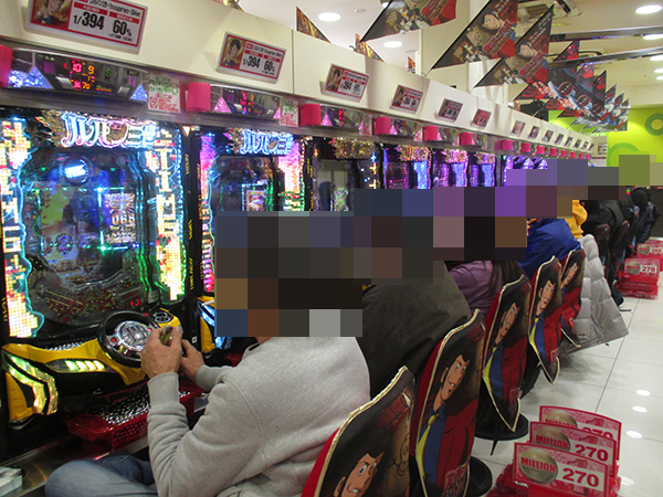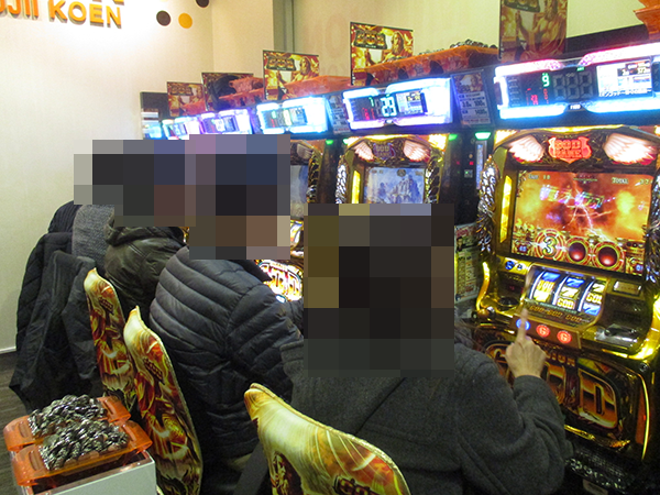 17時を過ぎた頃の4円パチンコでは「CR牙狼 魔戒ノ花」や「ぱちんこCR北斗の拳6 拳王」、「CRルパン三世 I’m a Super hero」といったMAXタイプが大盛況。機種のポテンシャルをみごとに引き出しているプレイヤーもおり、キラリと光るような笑顔をみせていた。