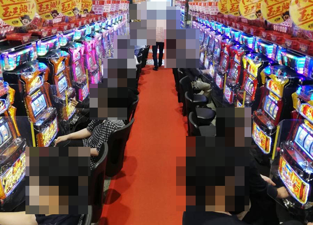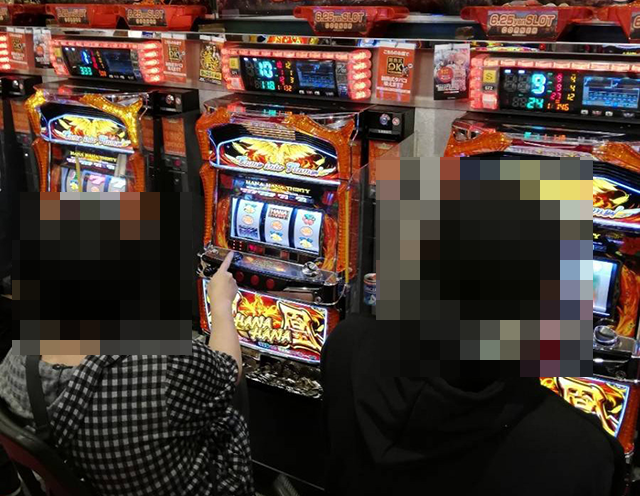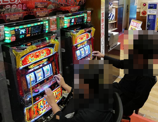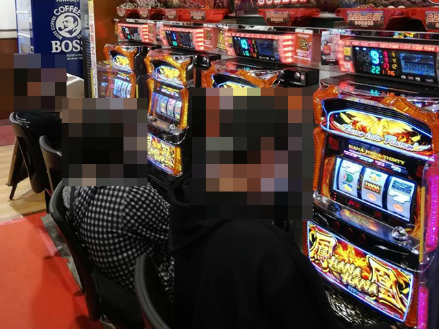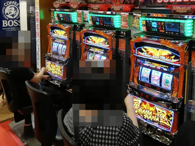 ホールには3機種のハナハナシリーズがあり、加熱式タバコを吸いながら遊技をおこなえるシマに設置されている。