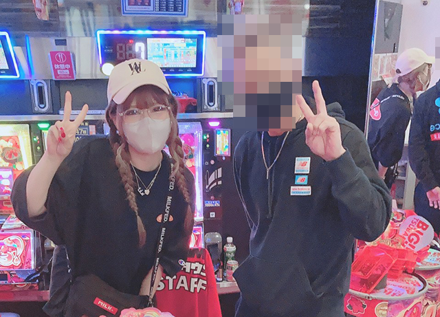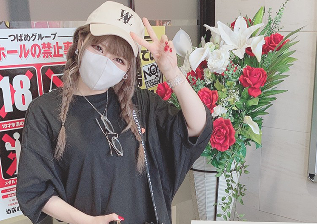 店内をまわりつつ、プレイヤーとの交流も楽しんでいた山崎ひびき。