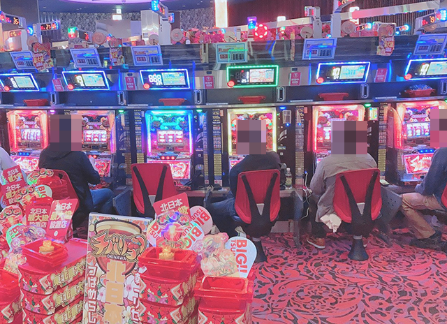 店内にはたくさんのプレイヤーが集まっており、パチンコもパチスロも大盛り上がり!