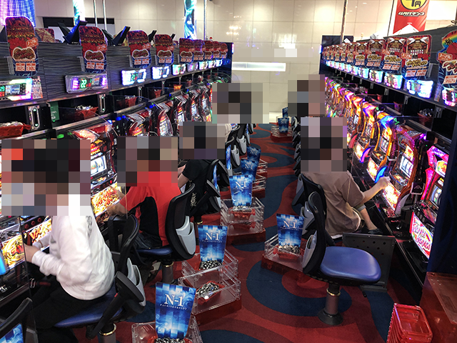 「プレミアムハナハナ-30」と「グレートキングハナハナ-30」で遊技をおこなっているプレイヤーもイキイキとした様子。