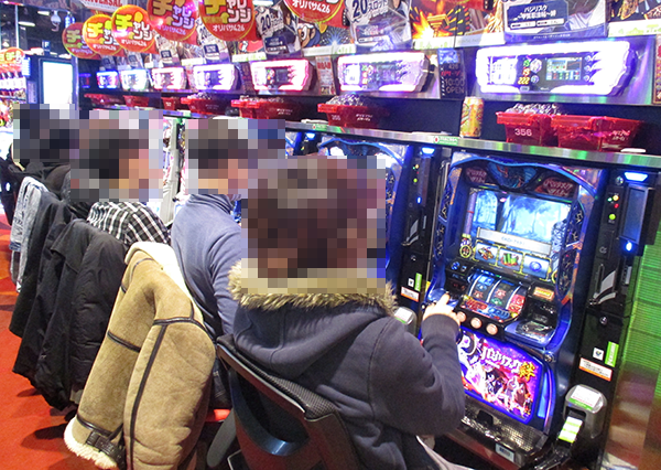 開店直後の20円パチスロでは、「バジリスク~甲賀忍法帖~絆」や「SLOT魔法少女まどか☆マギカ」などのAT・ART機が人気を集めており、満席となる機種も多数。