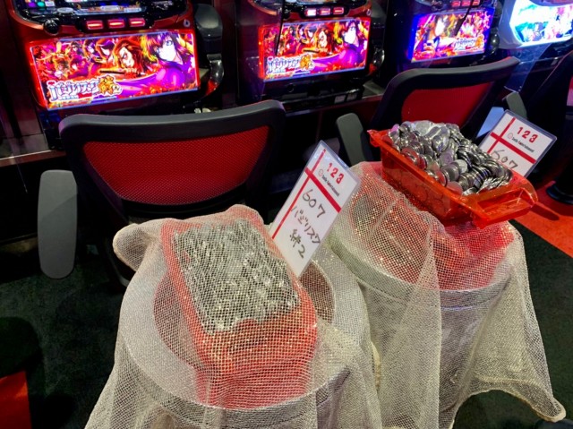 また上記2機種の他にも、別積みや複数使用など、ドル箱の山が多数の台で見受けられた。