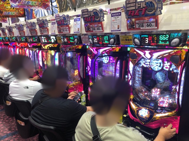 設置12台と同店では多めながら4分の3がプラスで全台差枚数は+6,000枚超だった。こちらも平均ゲーム数7,600Gと稼働は高く、多くのプレイヤーの粘り腰が功を奏したようだ。
