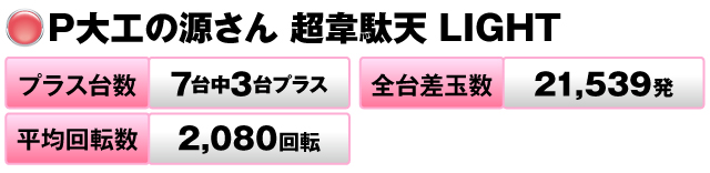 この日に限って実力を発揮したのは『LIGHT』の方。全台差玉数はプラス2万発超となった。