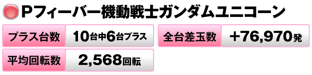 続いては全台差玉数プラス7万発超の2機種。『Pフィーバー 機動戦士ガンダムユニコーン』『ぱちんこCR真・北斗無双』と、こちらもCR機とP機の新旧マシンが並んだ。