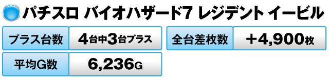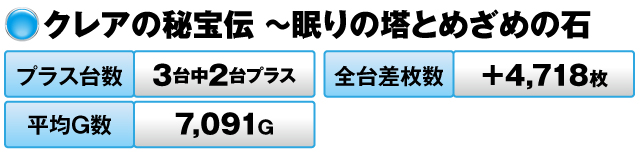 全台差枚数プラス5千枚に迫った2機種も紹介しよう。『パチスロ バイオハザード7 レジデント イービル』『クレアの秘宝伝 ~眠りの塔とめざめの石』だ。