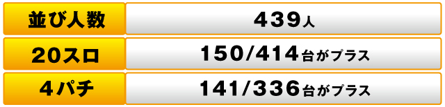 両者共にプレイヤーが終日ブン回して出玉を獲得、全台がプラスとなっていた。