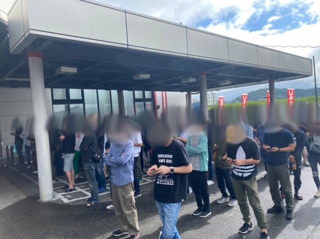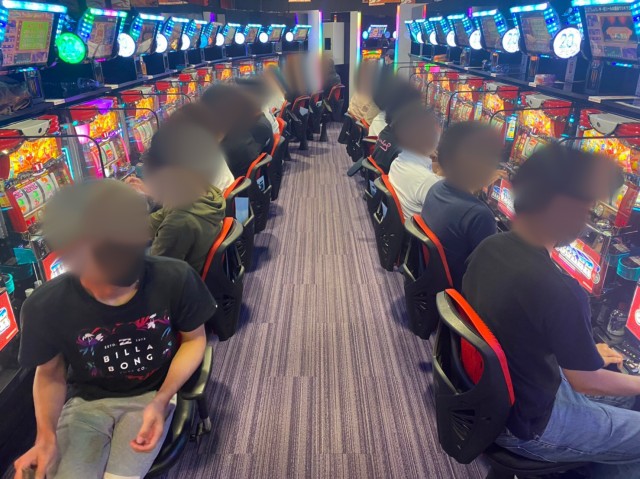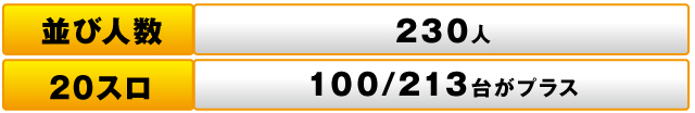 前回初実施で20スロのトータル差枚数がプラス6万枚を突破したこともあってか、前回を上回る230人のファンが朝イチから並び開店時間を待っていた。