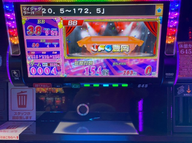 なお16台設置の『マイジャグラーⅣ』も稼働は高く、台上カウンターのドル箱表示が目立った。同店の20スロでは2機種のジャグラーシリーズだが大車輪の活躍を見せていたと言えよう。