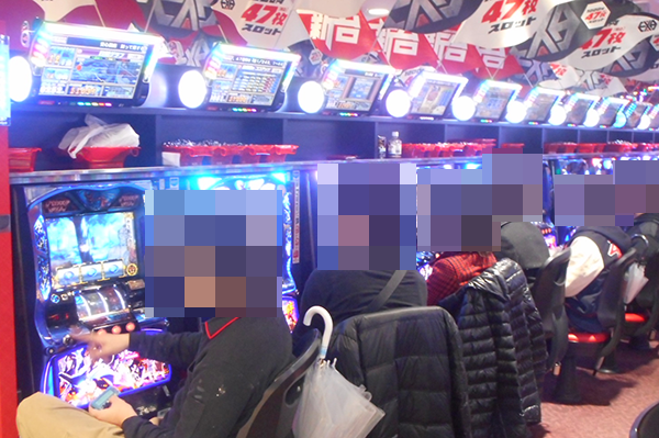 朝イチは47枚/1000円パチスロの「バジリスク~甲賀忍法帖~絆」や「SLOT魔法少女まどか☆マギカ」などが満席となるほどに注目を集めていた。