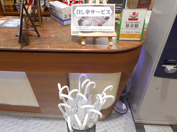 朝イチから行われている入場抽選には、100人以上が参加。この日は雨が降っていたが傘の貸し出しサービスがあり、傘を持っていない人も濡れることなく開店をむかえていた。