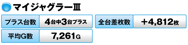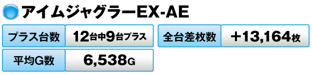 『アイジャグ』は、12台中9台がプラスで全台差枚数は+13,164枚を記録した。