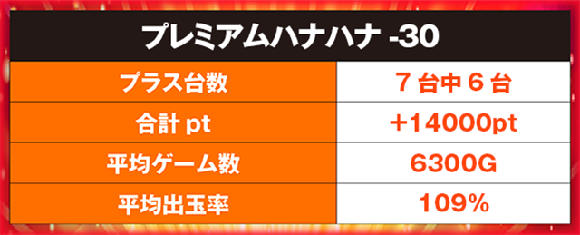 プレミアムハナハナ-30は7台中6台がプラス!!