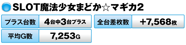 4台中3台がプラスで全台差枚数は+7,568枚を記録した。