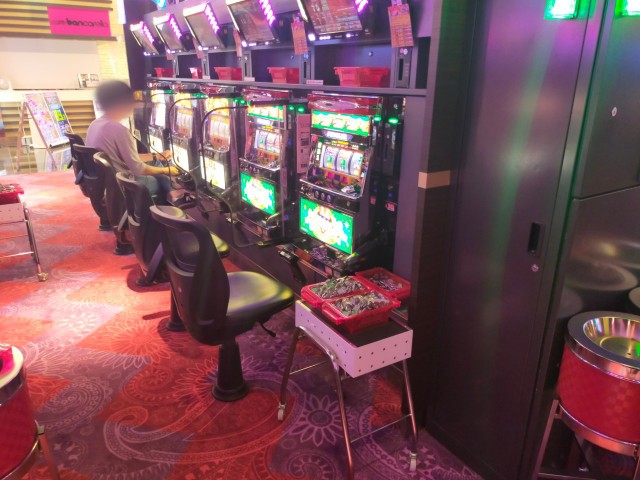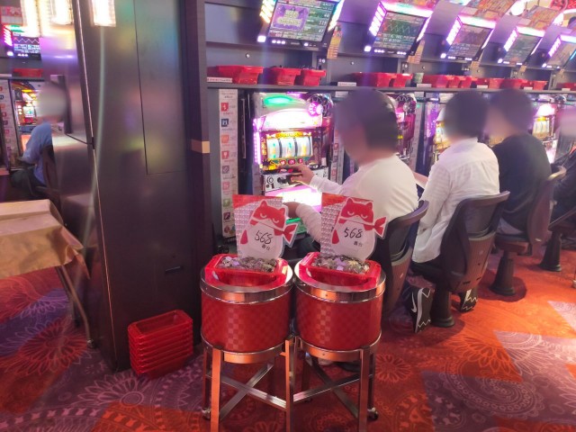 前述した機種に比べいずれも稼働は高くなかったが、ドル箱使用の台が目についた。