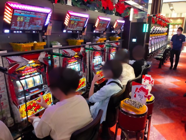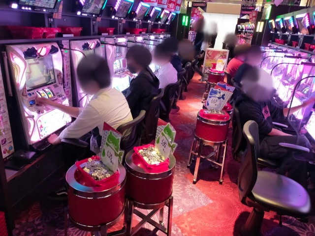 これら7機種以外にもノーマルタイプ&ART機を問わず、店内には別積みや複数使用などドル箱の数々が散見された。