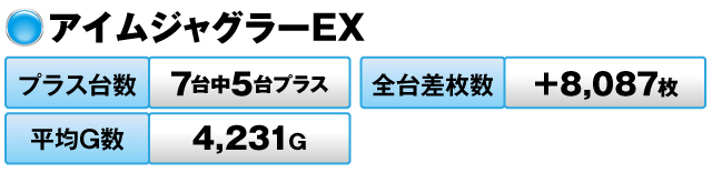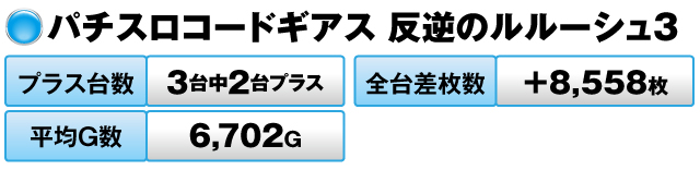 特に優秀だったのが前者で、平均ゲーム数は8,000G近く、設置の8割がプラス、全台差枚数は+11,000枚を突破した。