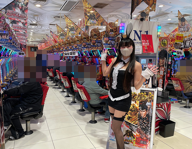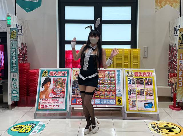 さまざまな機種が並ぶ店内で、元気よく「コス×プレイ×レポート」をおこないました(σ>▽<)σ