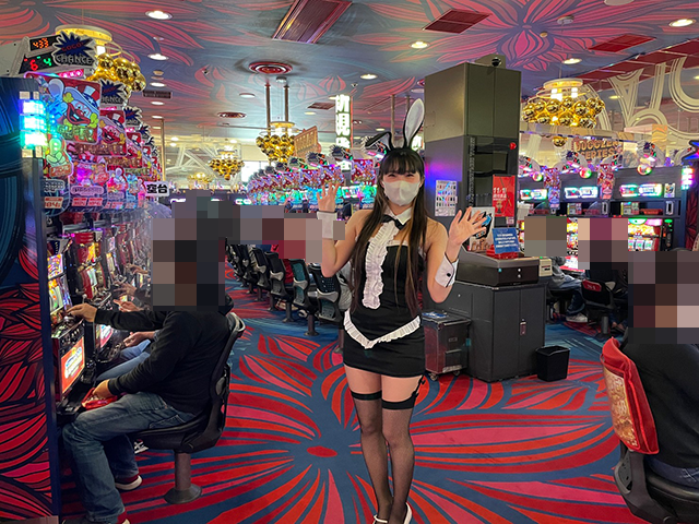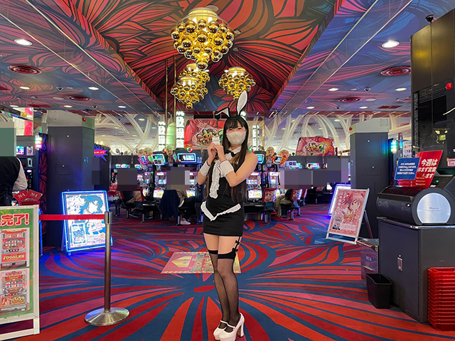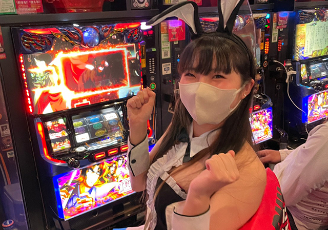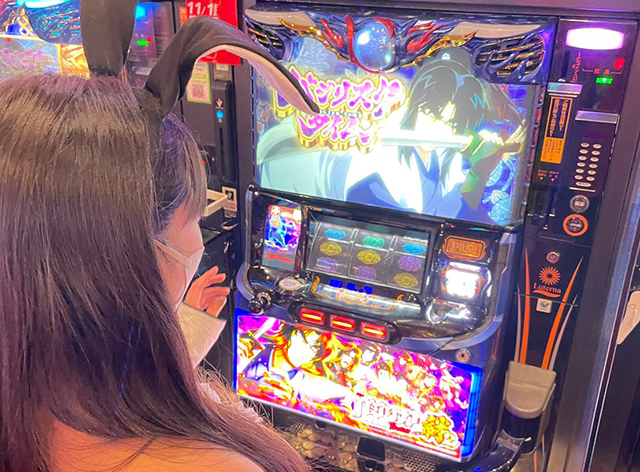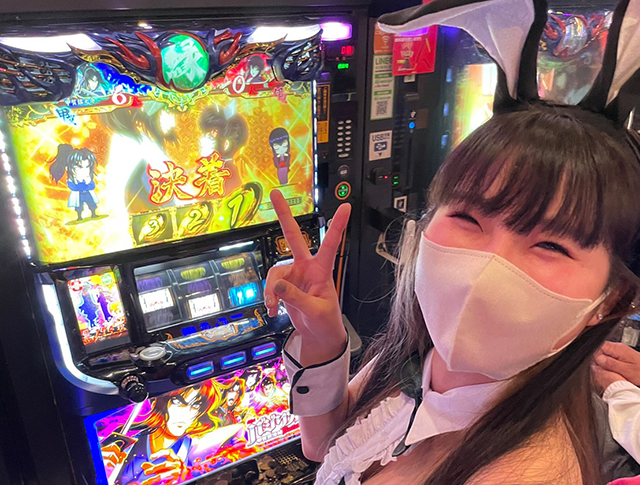 活気に満ちているパチスロで、かほちゃんは「SLOTバジリスク~甲賀忍法帖~絆2」で実戦をおこないました♪