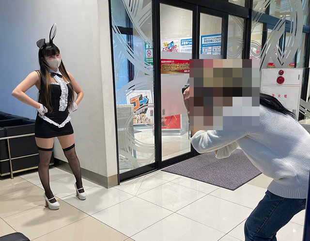 秋らしい私服姿から、セクシーなバニーガール風のコスチュームにお着替えしました❤︎