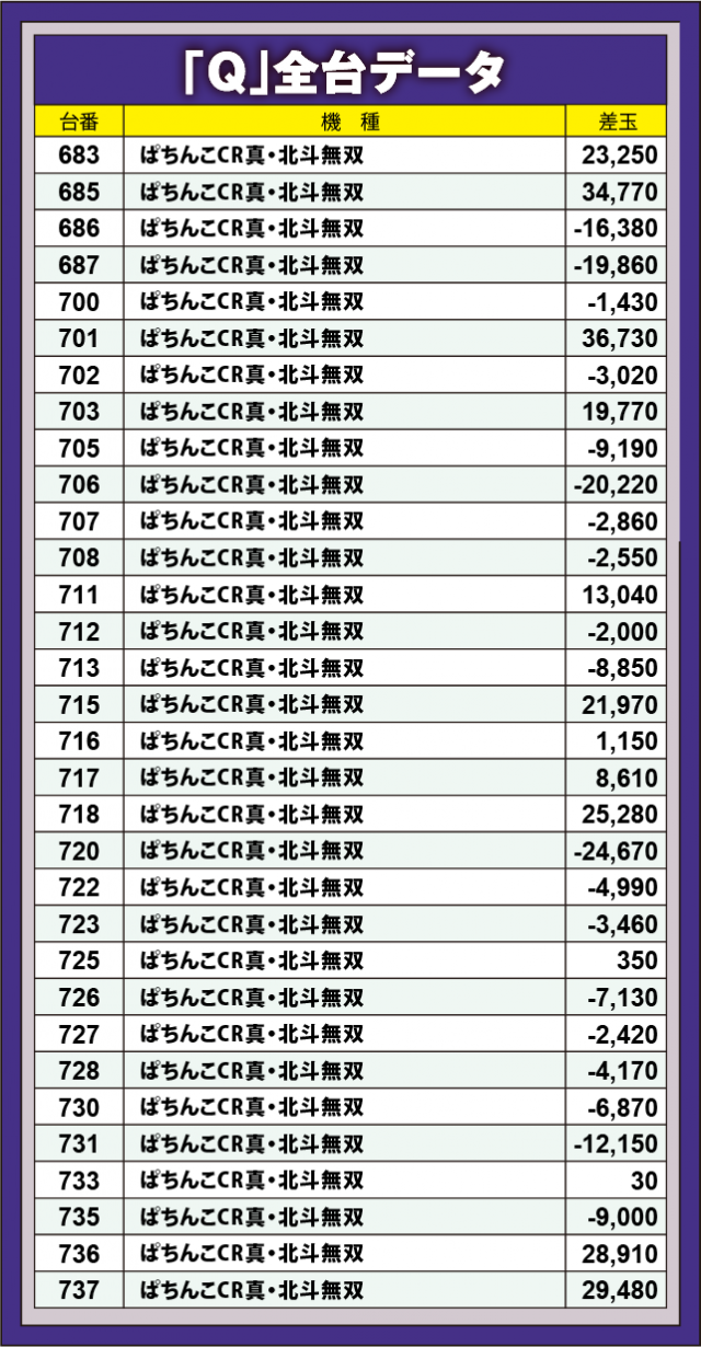 パチンコでは『ぱちんこCR真・北斗無双』32台が取材対象となり、トータルで10万発強のプラス差玉! 個別で見ると差玉プラス3万発近くの台が頻発、シマの盛り上がりをまざまざと感じさせられた。また出玉と稼働の良さにつられてか、多くのファンが粘り腰で遊技する様子が印象的だった。
