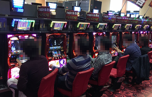 リニューアルされたばかりのパチスロコーナーでも大勢のプレイヤーが遊技を楽しんでいた。