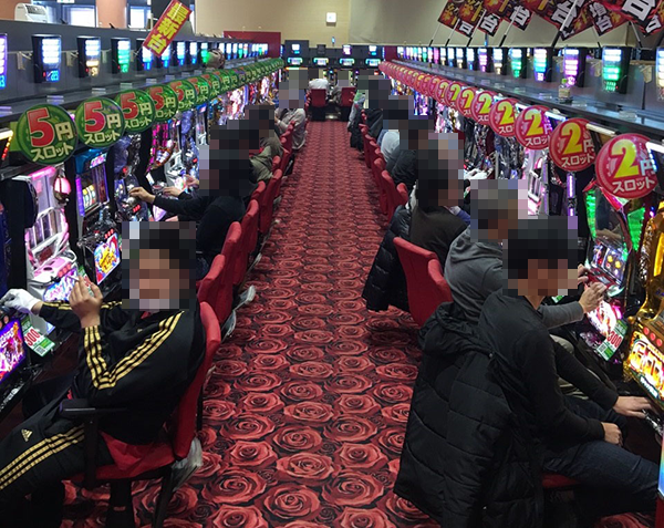 開店直後はパチンコ・パチスロともに低貸し玉コーナーが支持されており、早い段階からにぎやかな状況となっていた。