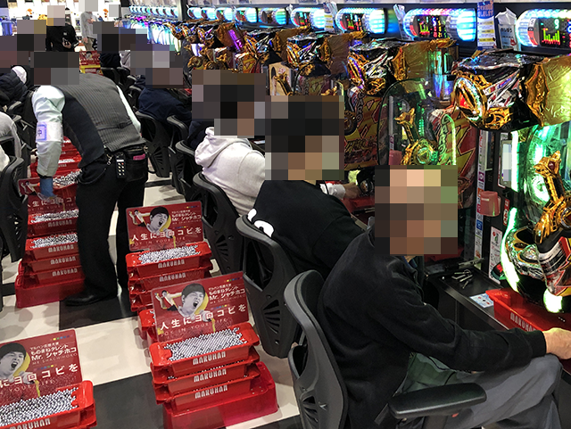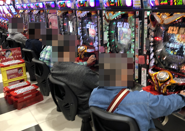 15時を過ぎた頃には、大箱2箱以上の持ち玉で遊技をおこなっているプレイヤーがいた。
