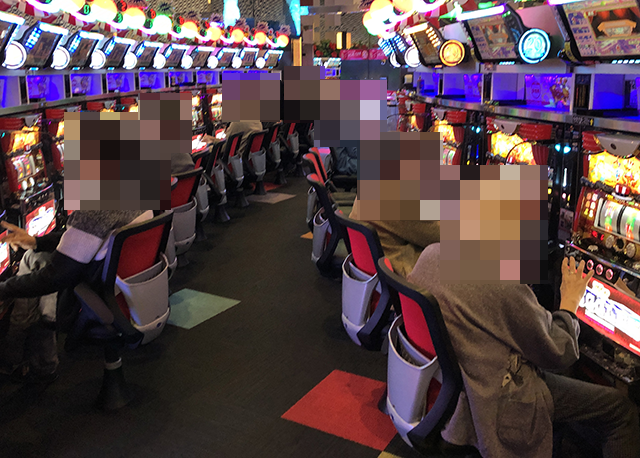笑顔で遊技をおこなっているプレイヤーが目立ち、明るいムードが感じられる状況。