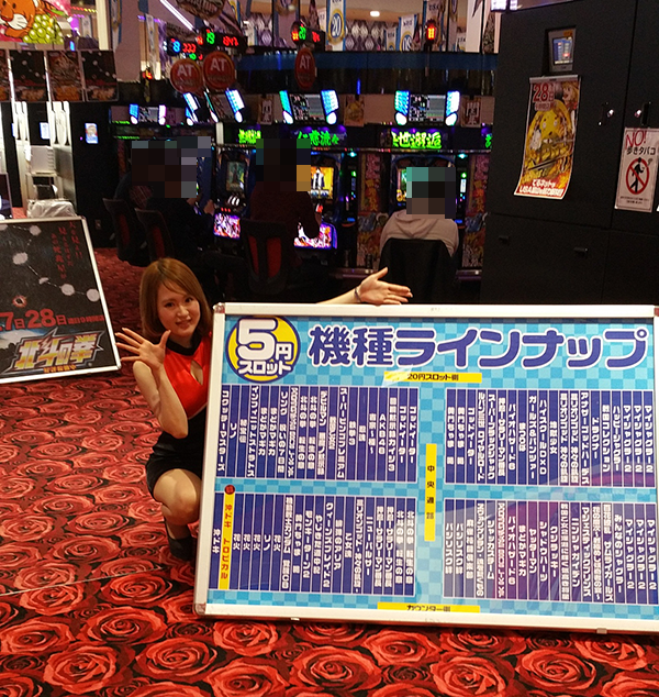ホールのいたるところに機種をモチーフにした華やかな装飾があり、雰囲気も明るい。