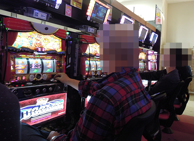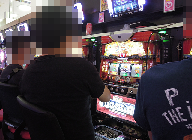 パチスロコーナーをみると、さまざまな場所にプレイヤーの笑顔が輝いていた。