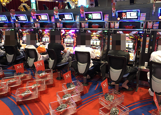 遊技を満喫しているような姿だけでなく、15時の時点でボーナス当選回数が30回以上の台も確認している。