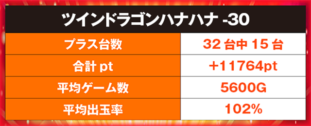 頂点をかけて、「プレミアムハナハナ-30」と「ツインドラゴンハナハナ-30」が競いあう結果となった。