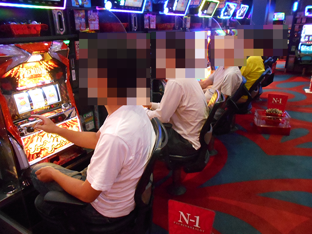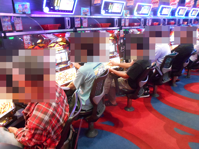 「ツインドラゴンハナハナ-30」をみてみると、多くのプレイヤーが明るい表情で遊技をおこなっており、大にぎわいといった状況。