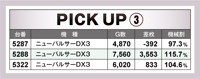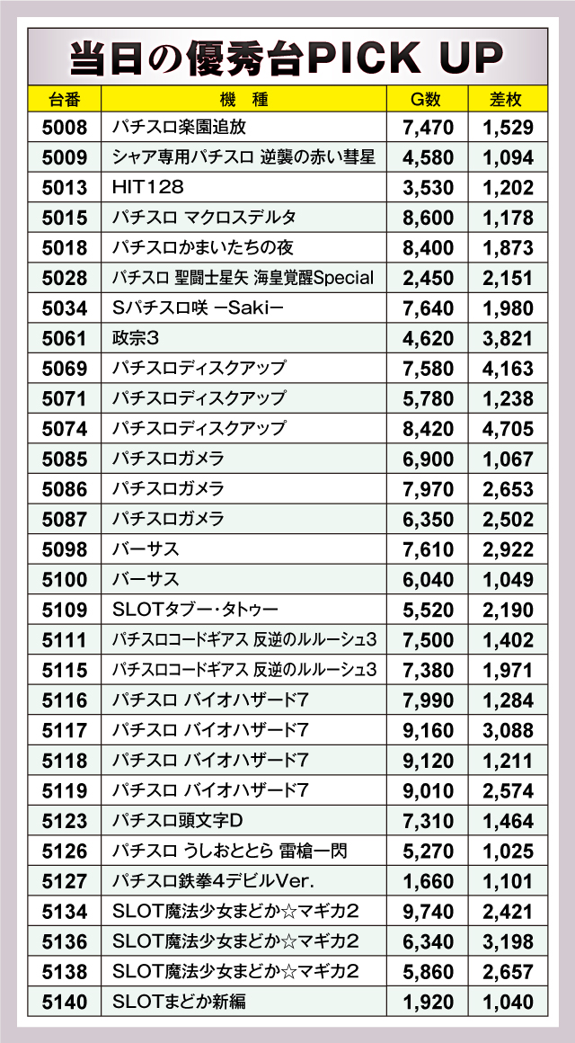 パチスロ全体では、残念ながらマイナス差枚となってしまったが、ピックアップ機種として紹介した4機種を筆頭に、感触の良い台があちらこちらで見られており、次の「ヒーローズレポート」では、大いに期待できそうだ。